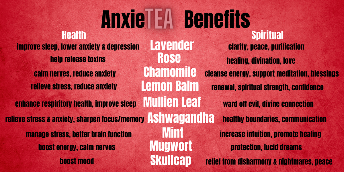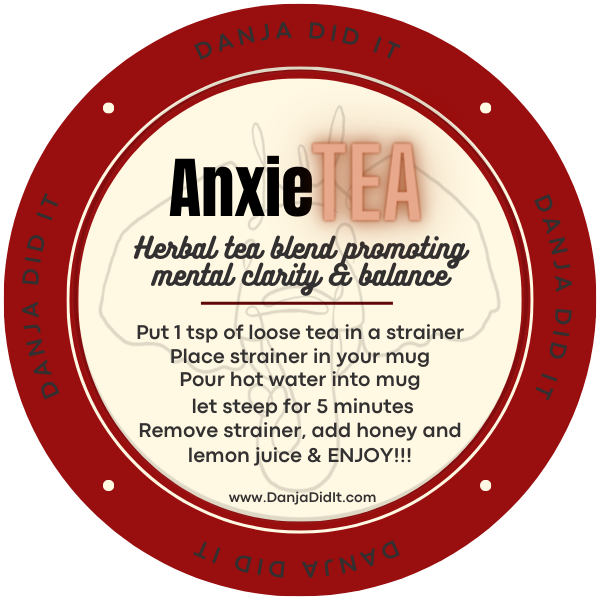 AnxieTea is a handcrafted herbal blend designed to enhance mental clarity and support emotional balance. Made with carefully chosen organic ingredients, this tea is created by Danja "The Positivity Plug," a wellness coach who fosters a safe space for personal growth and transformation. Enjoy AnxieTea as a comforting companion on your journey toward well-being and inner calm.