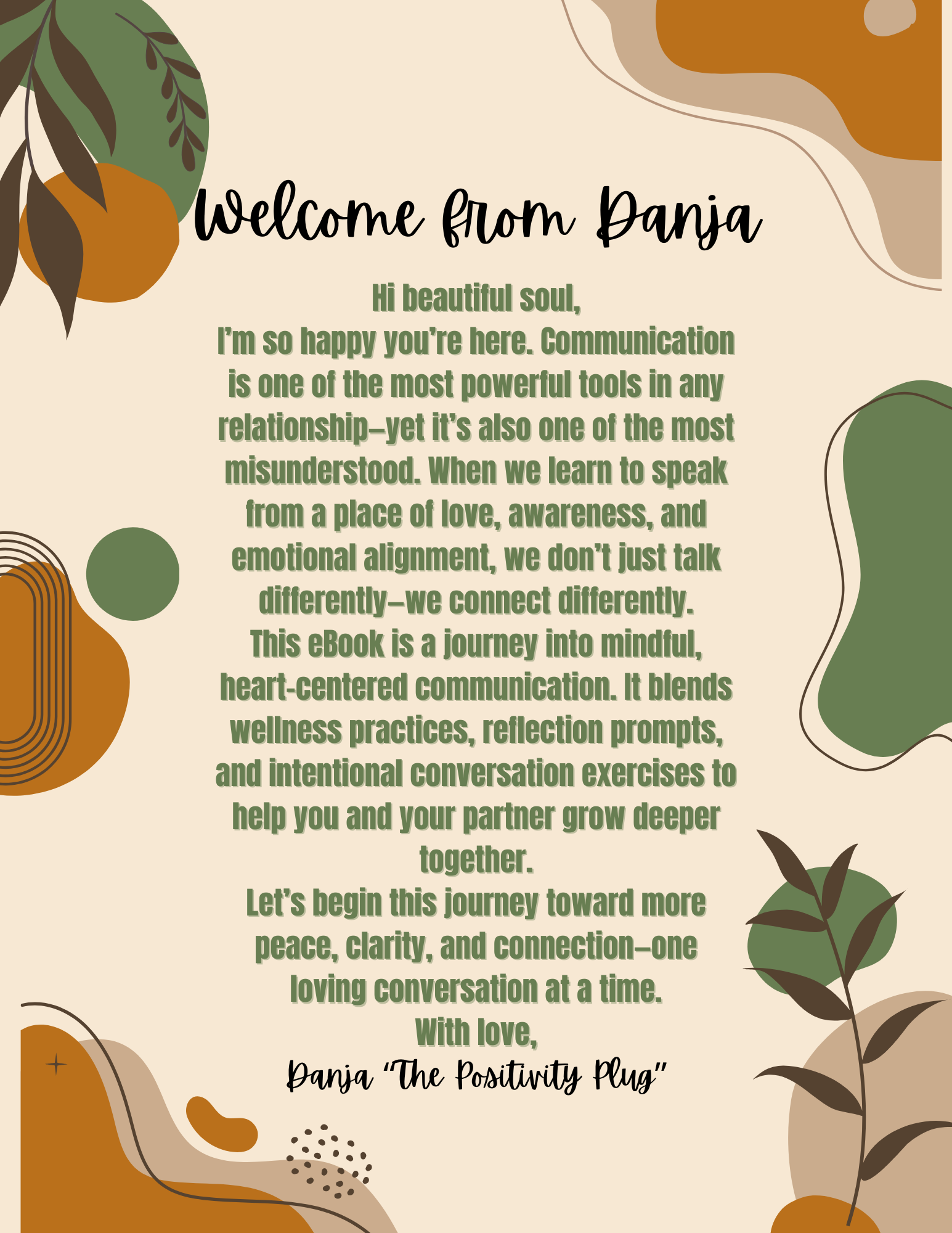 Transform your relationships through the power of intentional communication. This comprehensive wellness guide from Danja "The Positivity Plug" teaches you how to speak with love and authenticity in every conversation. Discover practical strategies to express yourself clearly, listen deeply, and resolve conflicts with compassion. Whether you're navigating romantic partnerships, family dynamics, or friendships, this ebook provides actionable tools to strengthen your connections and foster genuine understanding. Elevate your communication skills and build relationships rooted in respect, empathy, and mutual growth.